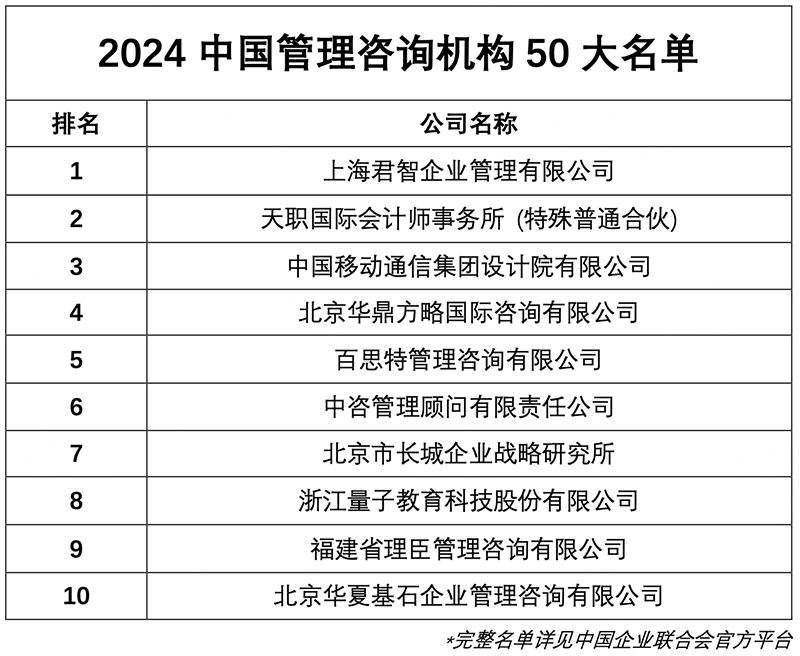 君智战略咨询荣列“2024中国管理咨询机构50大”第一名